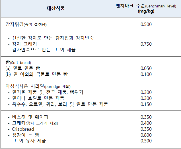 [참고 2] 유럽연합의 아크릴아마이드 벤치마크 수준