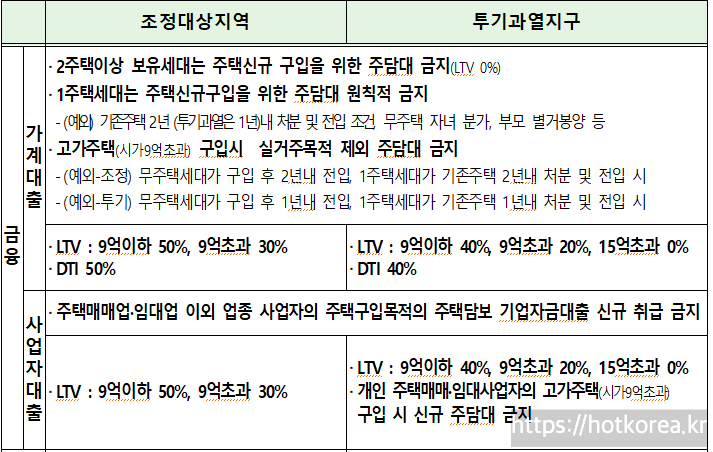 조정대상지역 및 투기과열지구에 대한 상세내용이 발표되었습니다. 관련 지역은 위 지도를 참고하시면 되고 상세지역은 아래에 설명하였습니다. 가장 크게 바뀐것이 아래 4가지인데요, 큰 변화가 생겼네요. 아래 상세한 설명을 보면서 주택구입 및 투자하실분들은 참고하시기 바랍니다.
