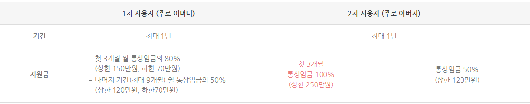 물론 반대도 가능합니다. 아빠가 먼저 사용하고 그 다음에 엄마가 사용한다면, 엄마의 육아휴직은 250만원을 지급받게 되는거죠.