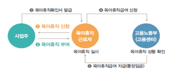 예를들어, 육아휴직 시작일이 7월1일이라면, 8월1일에 고용노동부에서 신청할 수 있어요. 신청 후 급여는 5일정도 소요되는것 같아요.