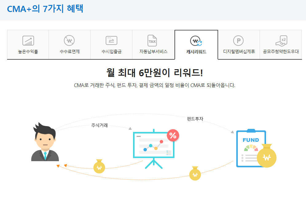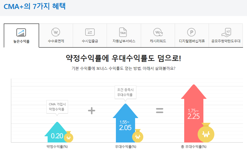 CMA+ RP형에 가입하시면 연0.20%(세전) 약정수익을 받으실 수 있습니다.