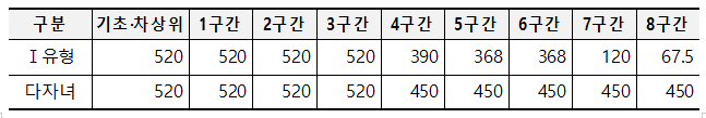 < 2020년 기준 국가장학금(Ⅰ유형, 다자녀) 지원구간별 연간 지원액 (단위: 만 원) >