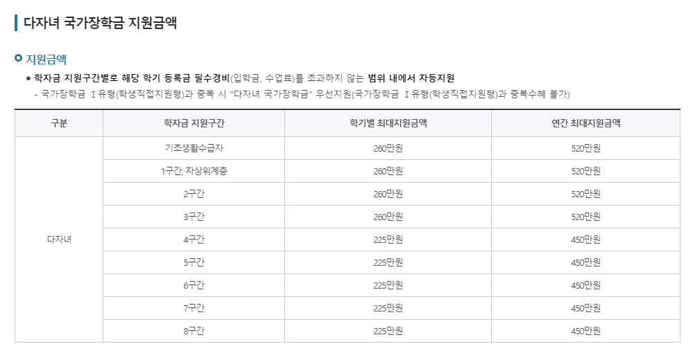 2) 다자녀 장학금 대상자 조건보기