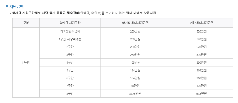 1) I유형 장학금 대상자 조건보기