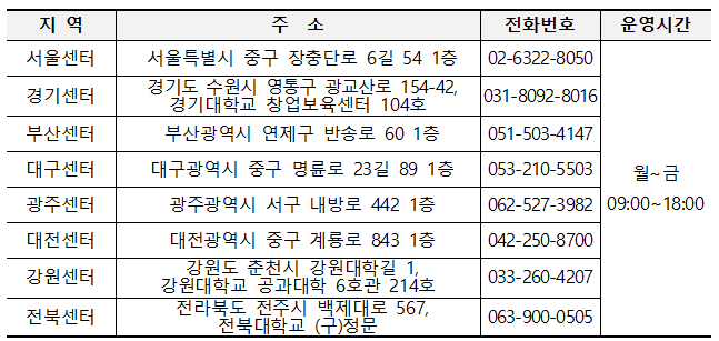 < 전국 현장지원센터 위치 >