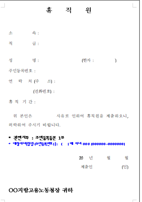 공무원 출산휴가,육아휴직 사전예고서양식 다운로드