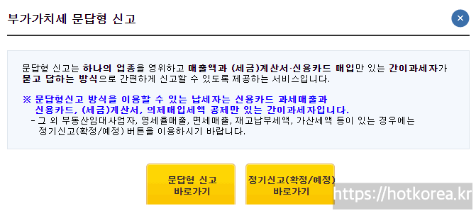 ※ 문답형신고 방식을 이용할 수 있는 납세자는 신용카드 과세매출과