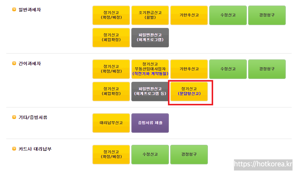 정기신고(확정/예정) 버튼을 이용하시기 바랍니다.
