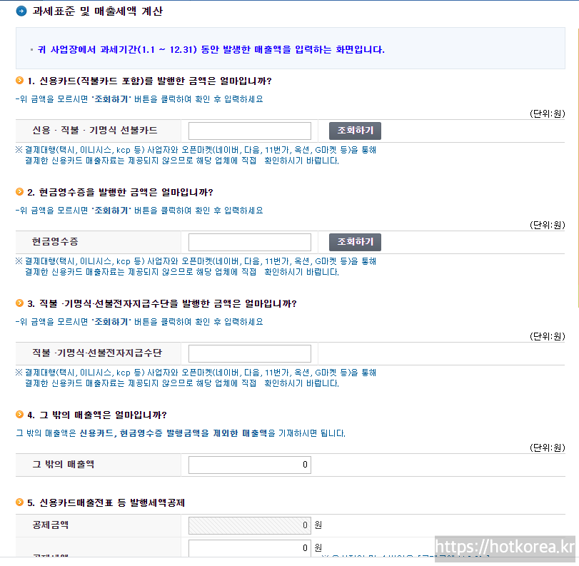 - 그 외 부동산임대사업자, 영세율매출, 면세매출, 재고납부세액, 가산세액 등이 있는 경우에는