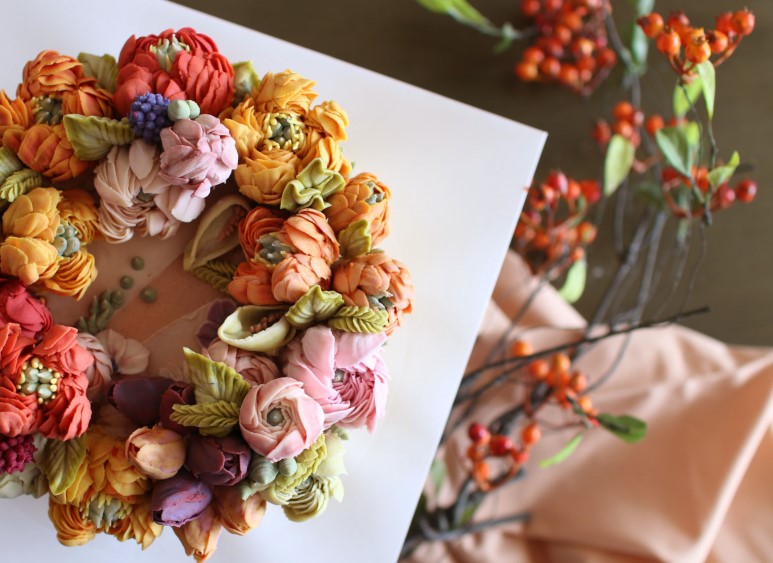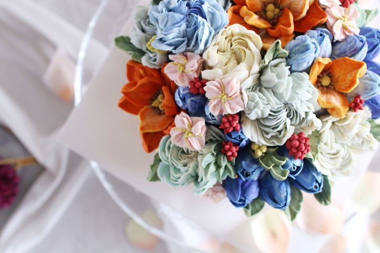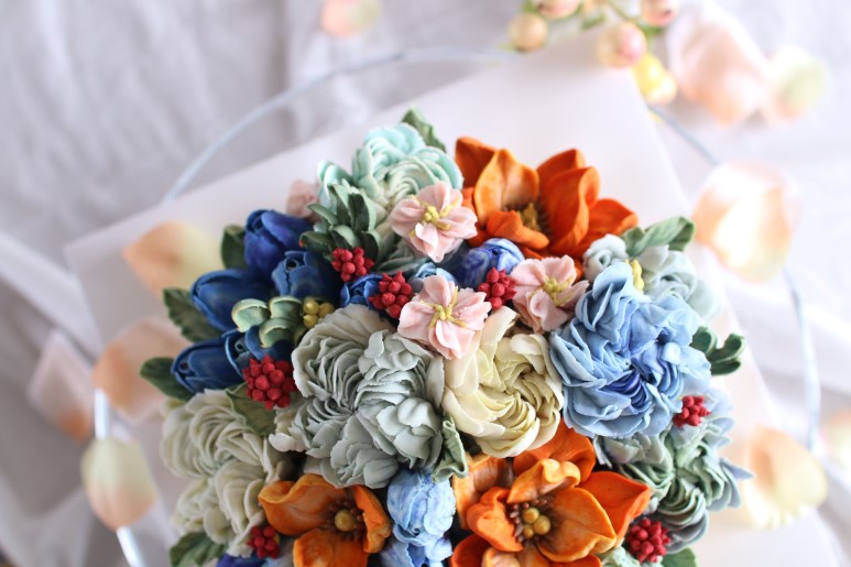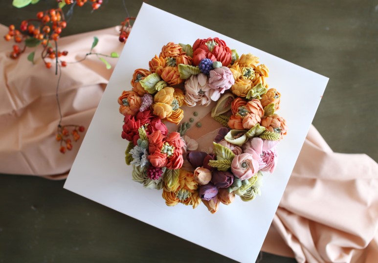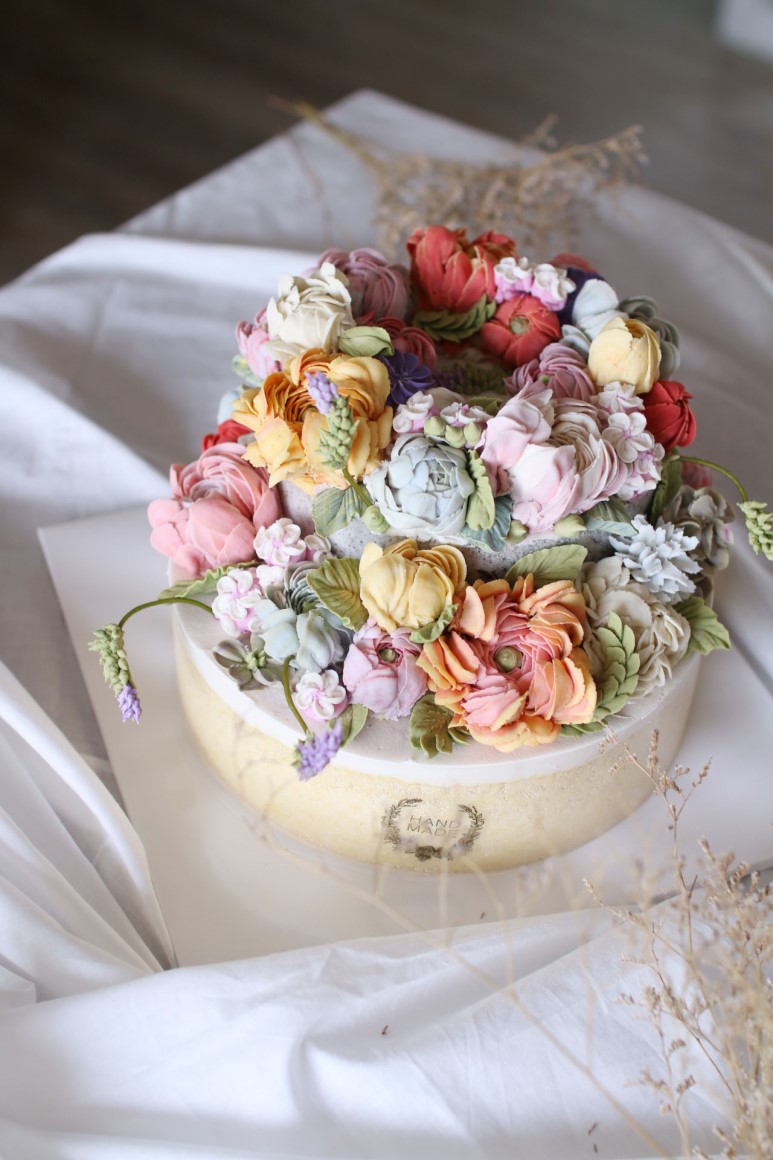 제작 부탁을 받을 때는 러넌큘러스, 작약을 많이 올린다.
