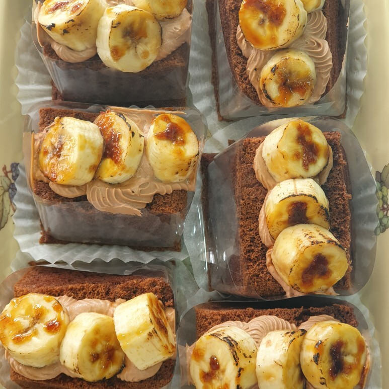 토치 카라멜 한 바나나를 얹은 초코쉬폰산도
