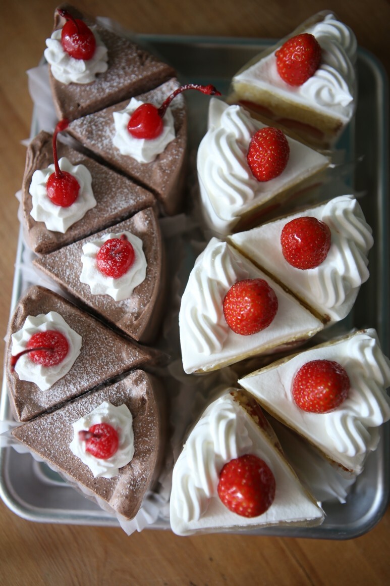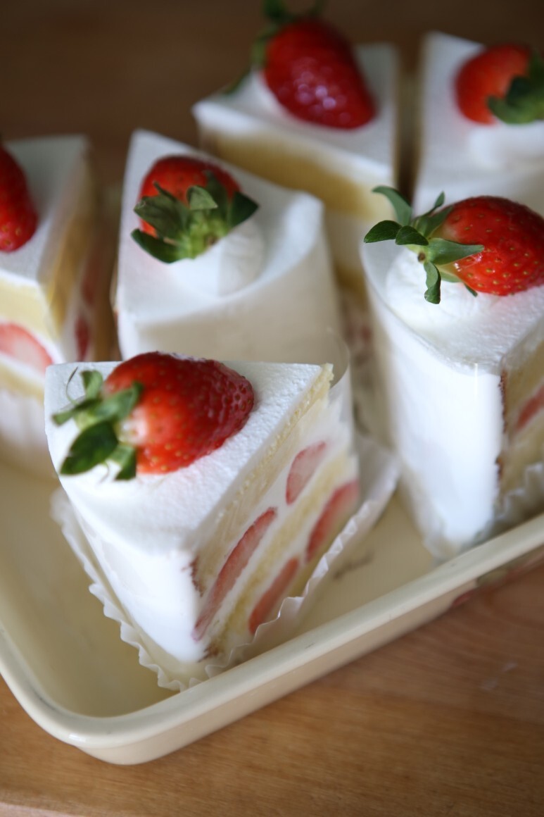 너무너무 예쁘게 잘린 딸기 생크림케이크!