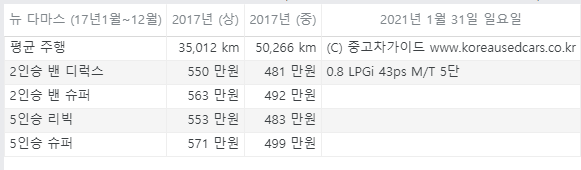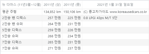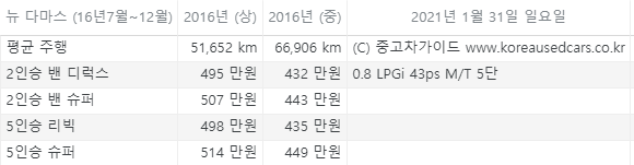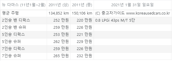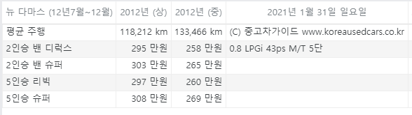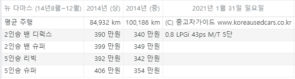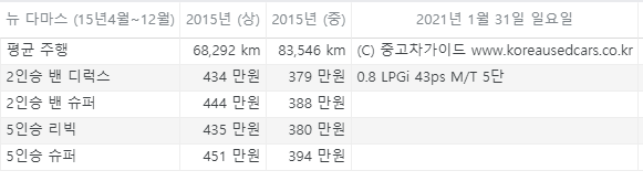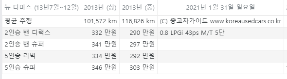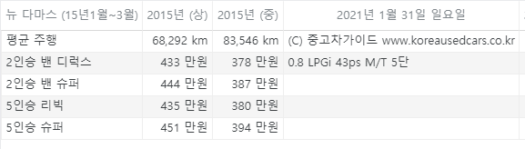 출처 : 중고차 가이드 (www.koreausedcars.co.kr/)
