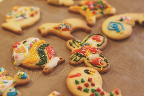밖에서 아이싱 말리는 중인데 너무 알록달록 예뻐서 찍어봤어요!