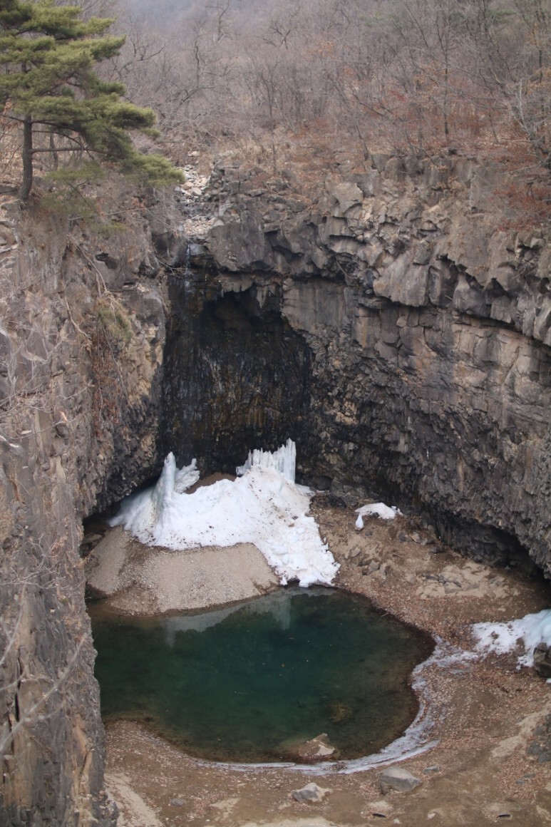 한국에 흔하지 않은 주상절리 폭포인데...