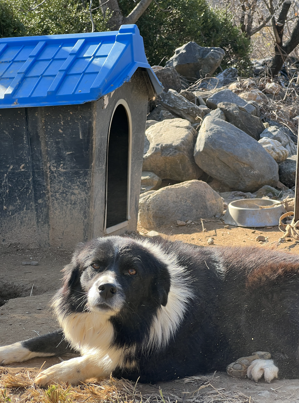 너무너무 순하고 똑똑한 녀석인데 보더콜리 바둑이, 요즘 동물견권이 높아져서 묶여있는 모습이 안타깝지만...