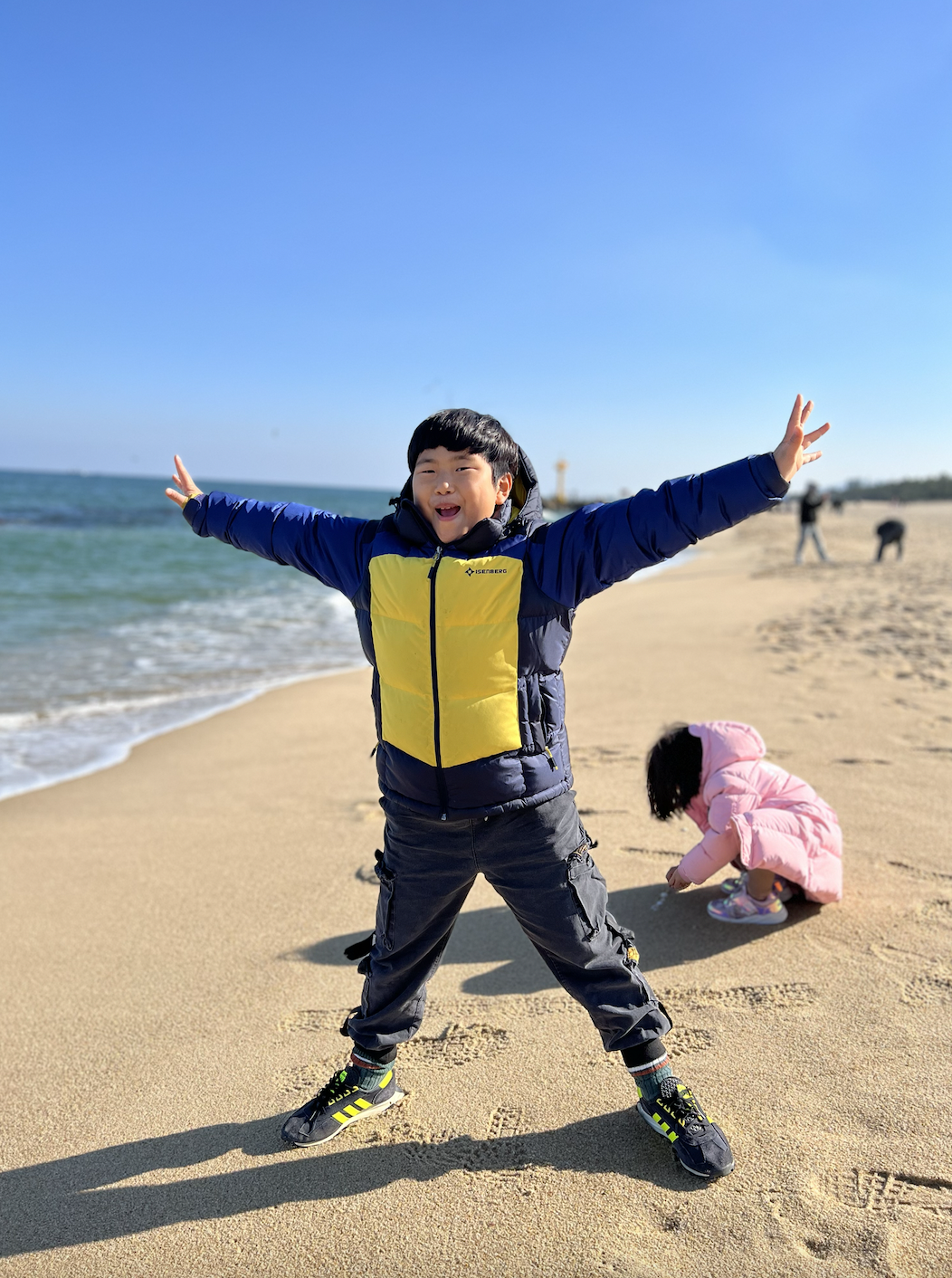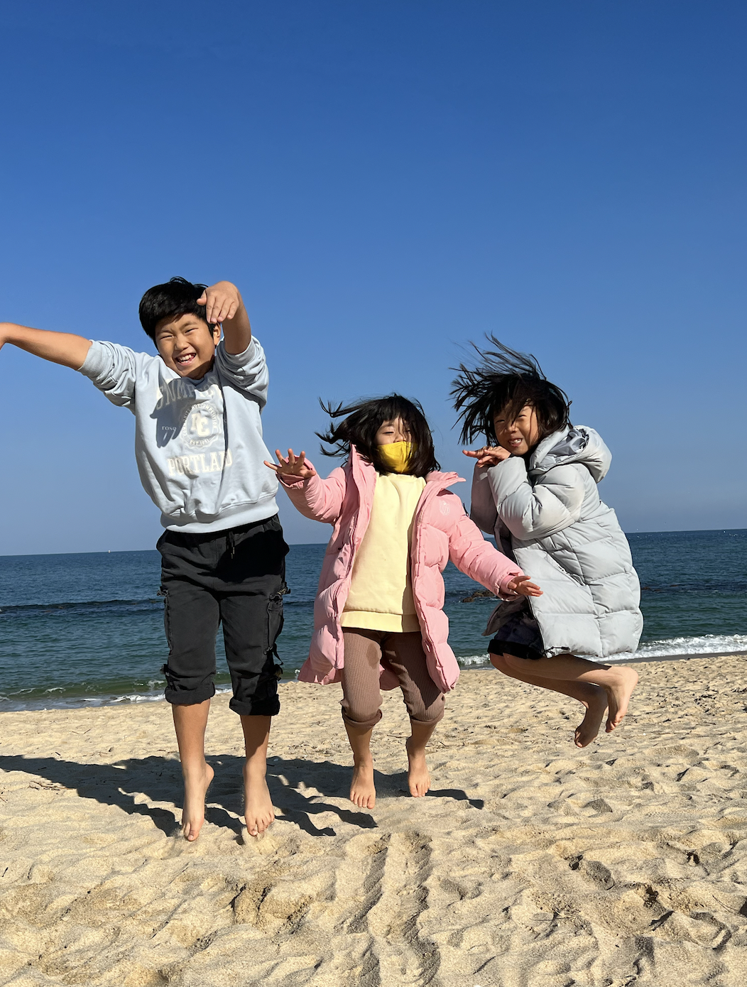 차에서 내리자마자 큰녀석 막내녀석 해변으로 뛰어내려가서 파도에 바로 운동화 적셔주시고...