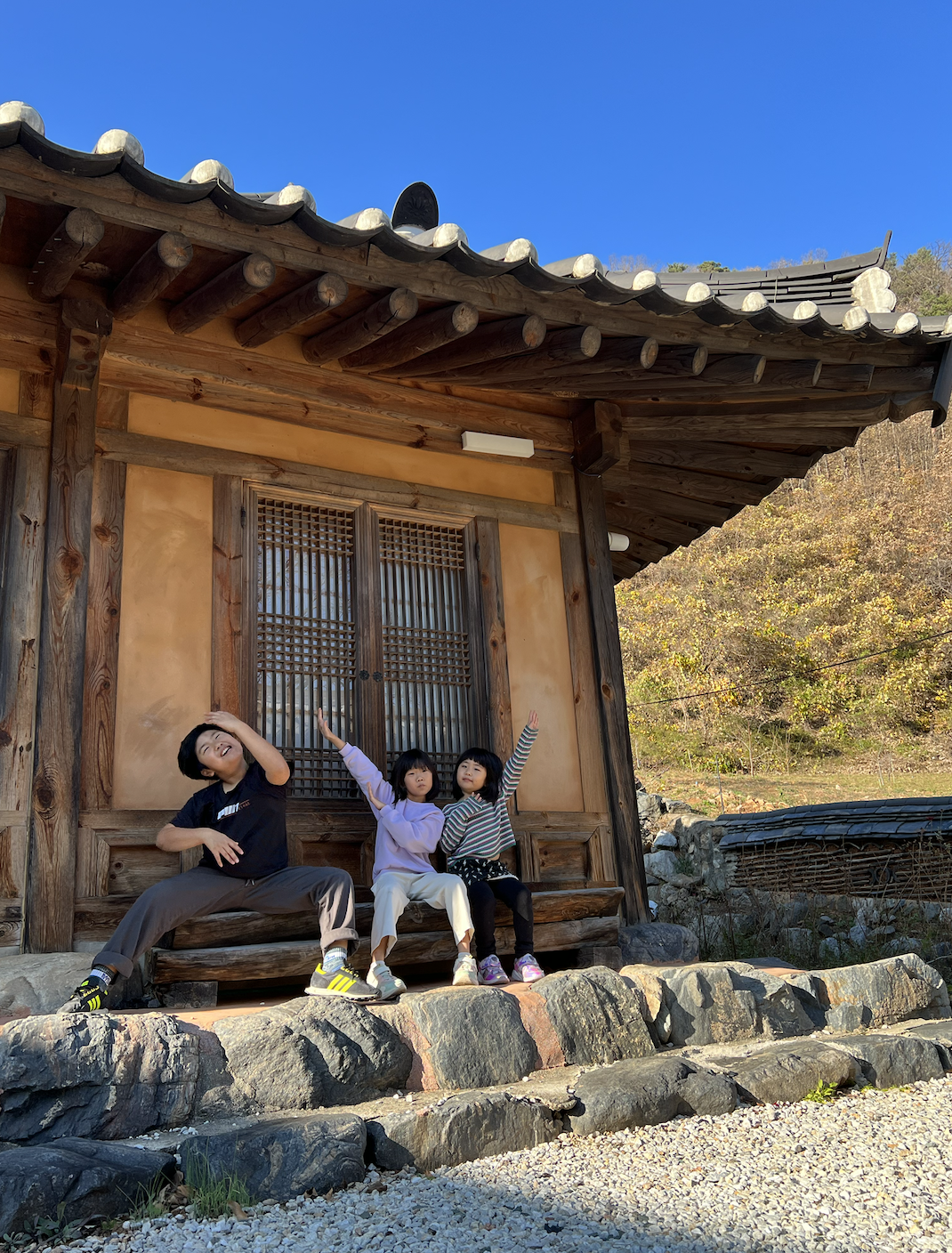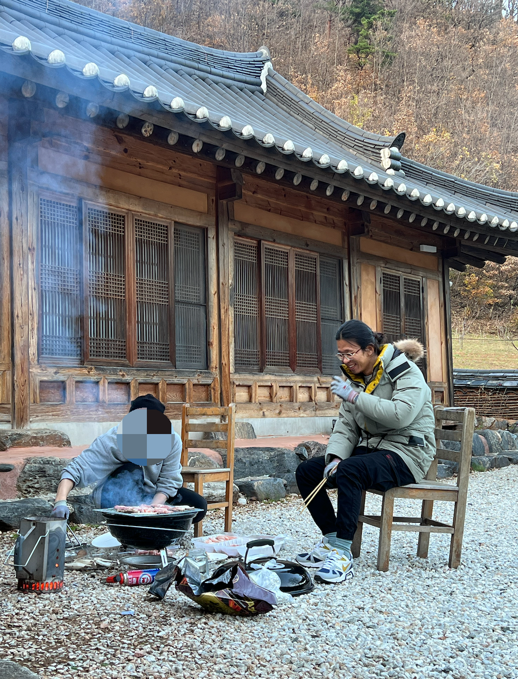 아이들과 함께 여행하면 무척 피곤하다. 그런데 집 자체가 친환경이고 주변에 차도 거의 안다니고 산자락 아래여서 아참 그리고 집도 저 한옥만 있어서 진짜 진짜 조용했다.