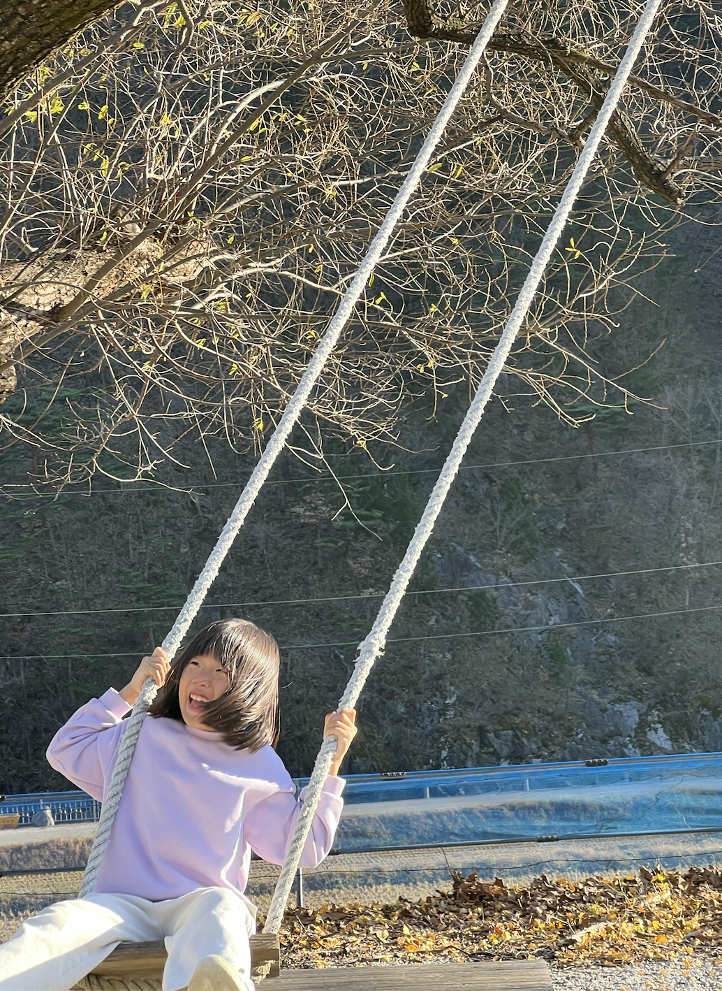 어떤 분이 해놓으셨는지는 몰라도 마을을 대표하는 큰 나무에 저렇게 밧줄을 매달아 그네를 만들어 두셨다.