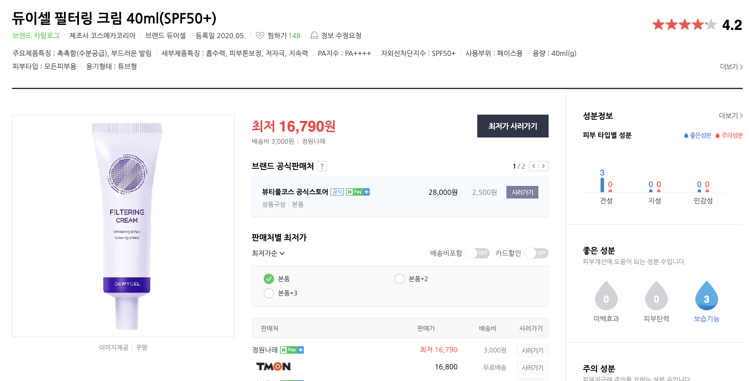 일단 마음에 들었던것은 자외선차단지수 50!!
