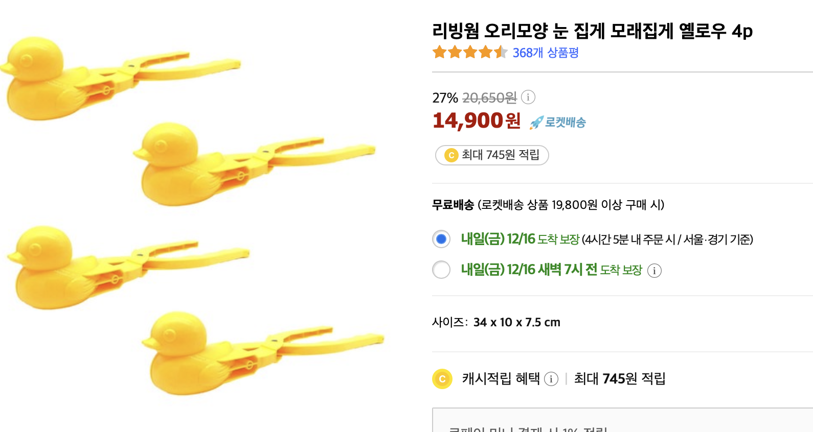 2. 우리가 샀던 노란색(아이들이 좋아해요!!!) 눈오리집게(가격은 4개 14,900원)