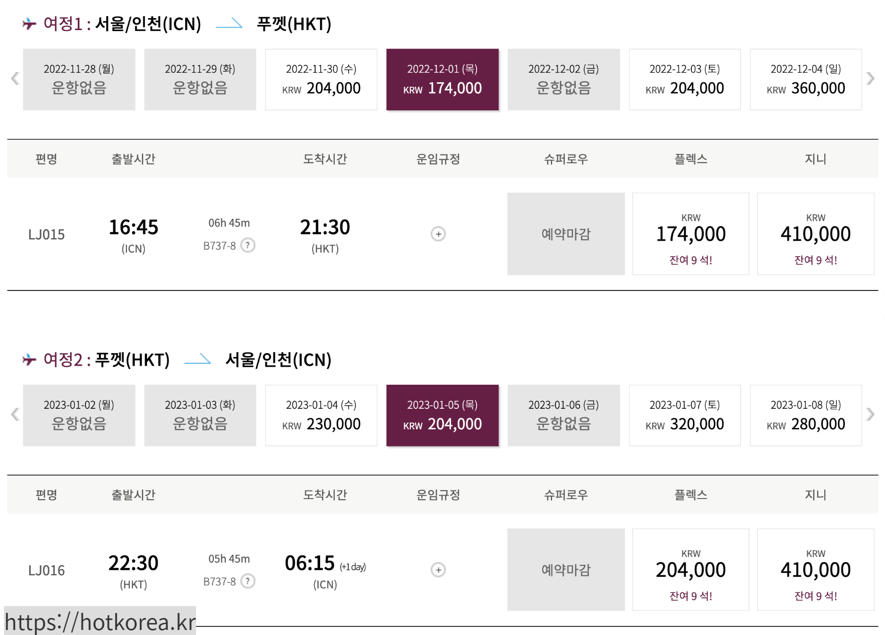 1. 푸켓 직항티켓은 대한항공, 진에어