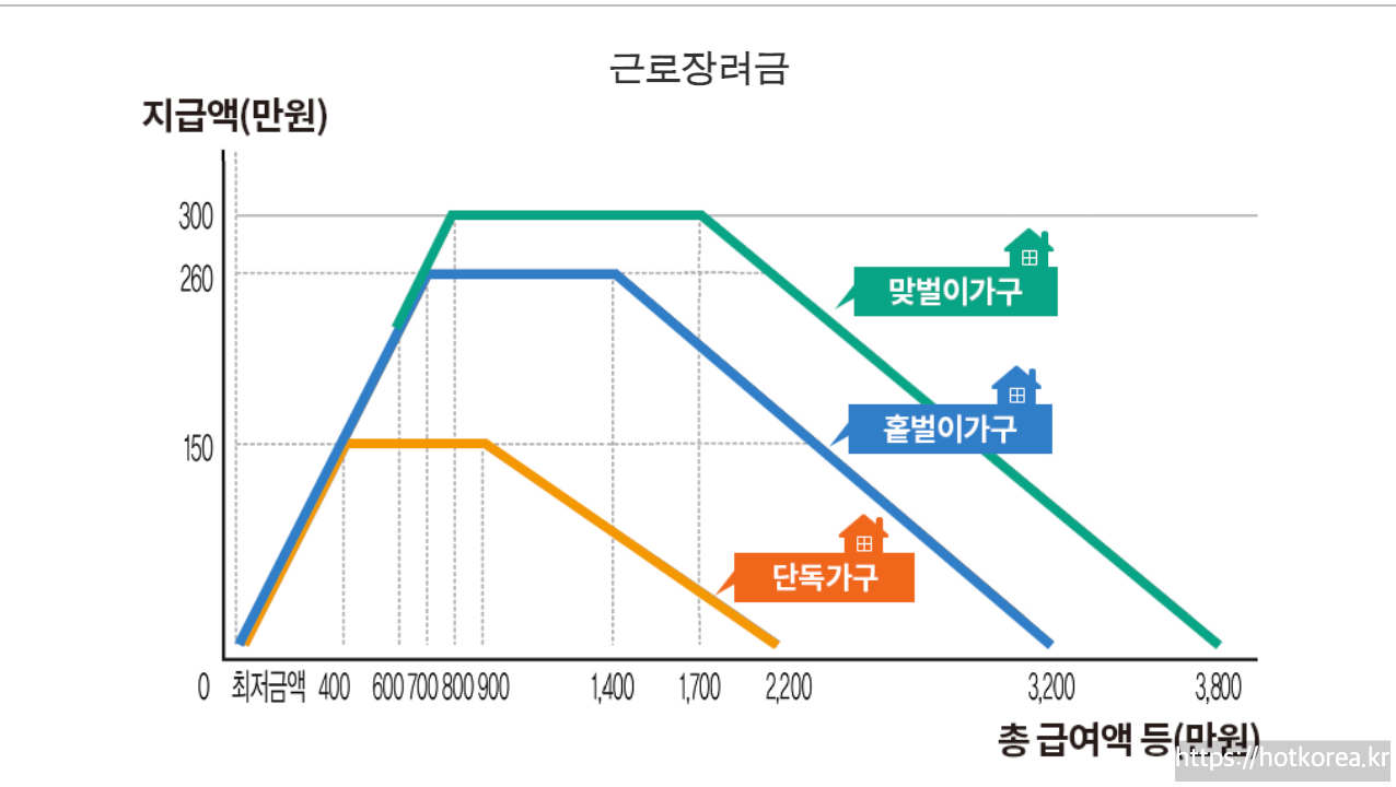 - 홑벌이가구는 3,200만원 미만이면 근로장려금, 자녀장려금 신청 가능