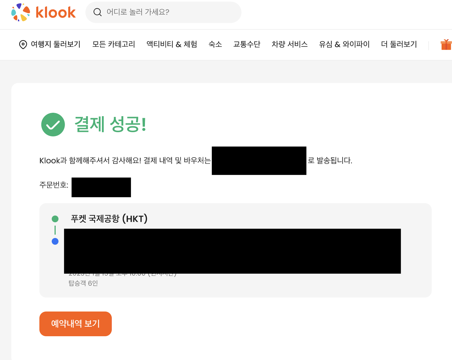 - 이메일 주소를 잘 입력. 이메일로 예약 확정에 대한 메일이 온다. (이건 결제하면 바로 온다.)