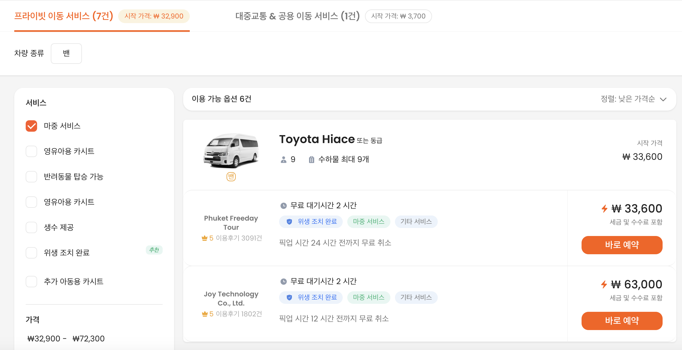 - 나의 경우 6명인데 가격이 33,600원에 마중서비스까지 되고 2시간 정도 무료대기가 된다.(이건 공항 도착후 픽업까지 시간인듯)