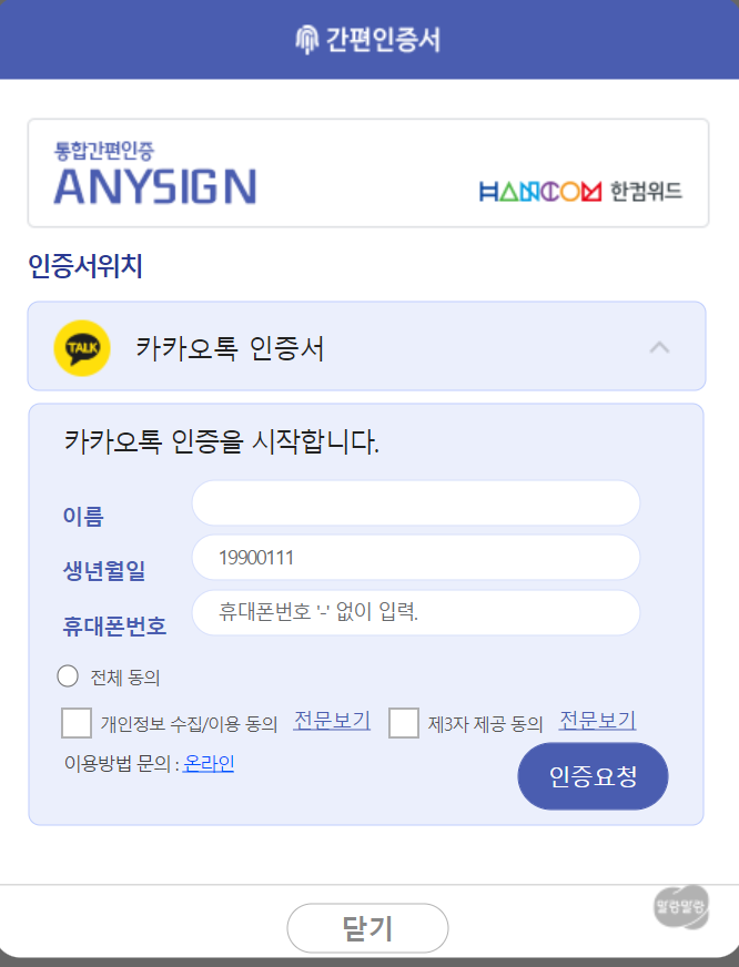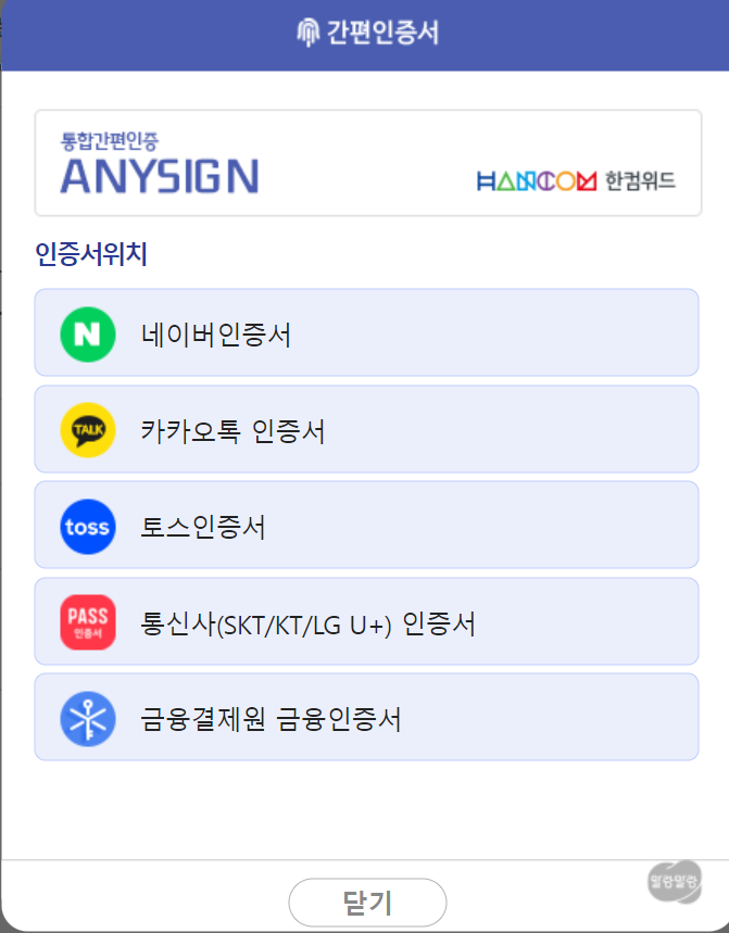 - 전 카카오톡 인증서로 했습니다.