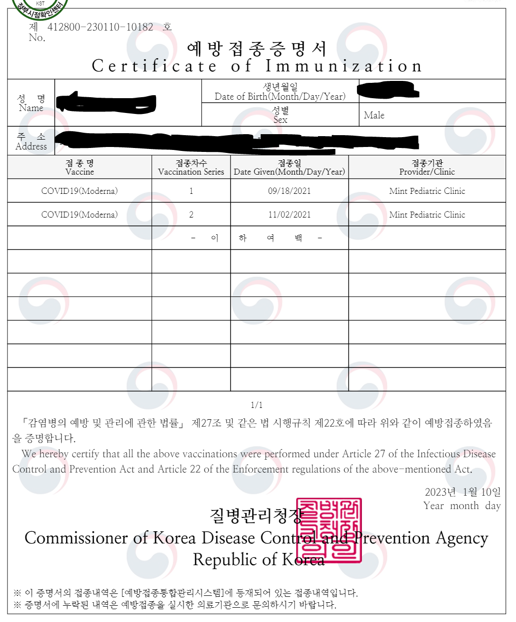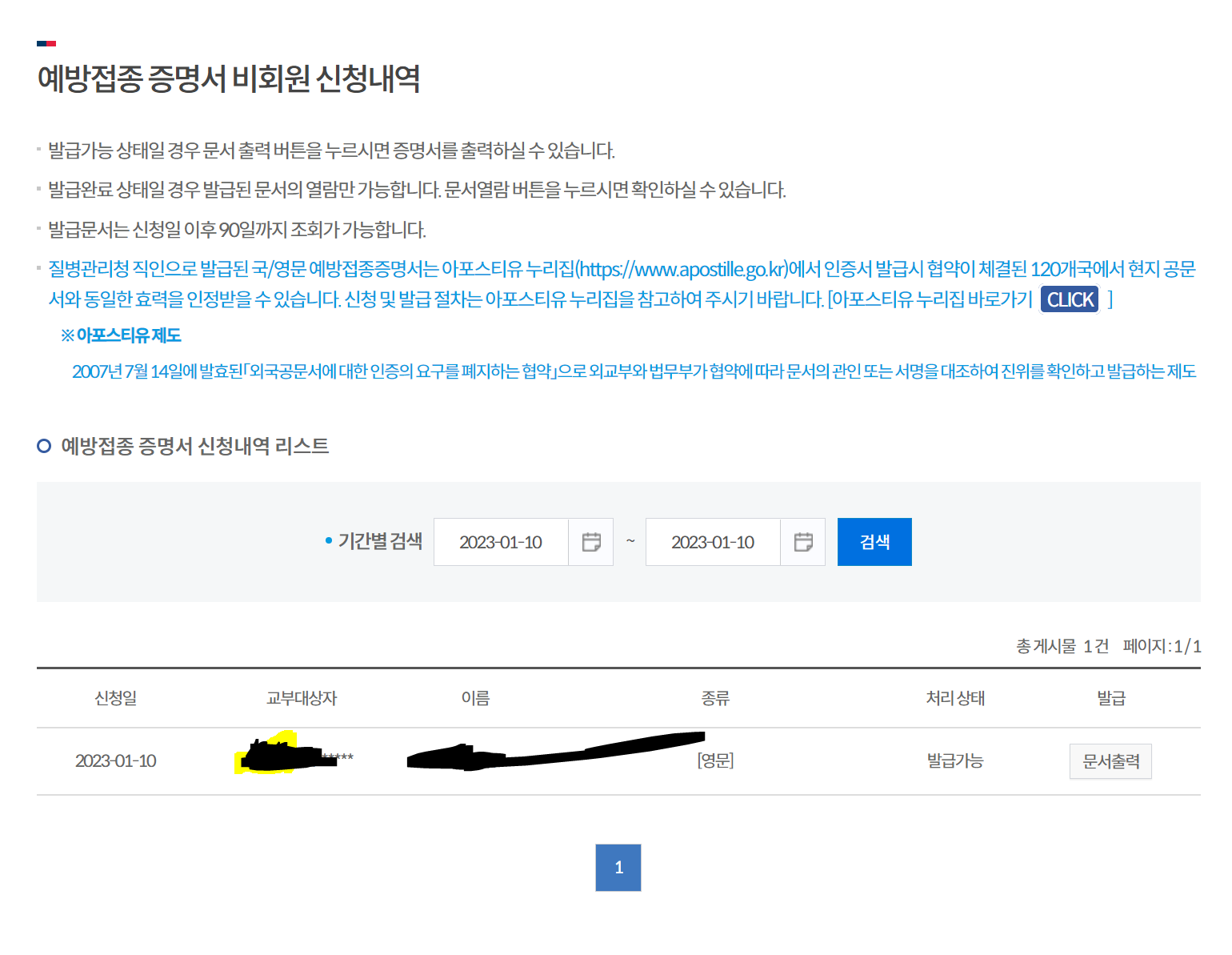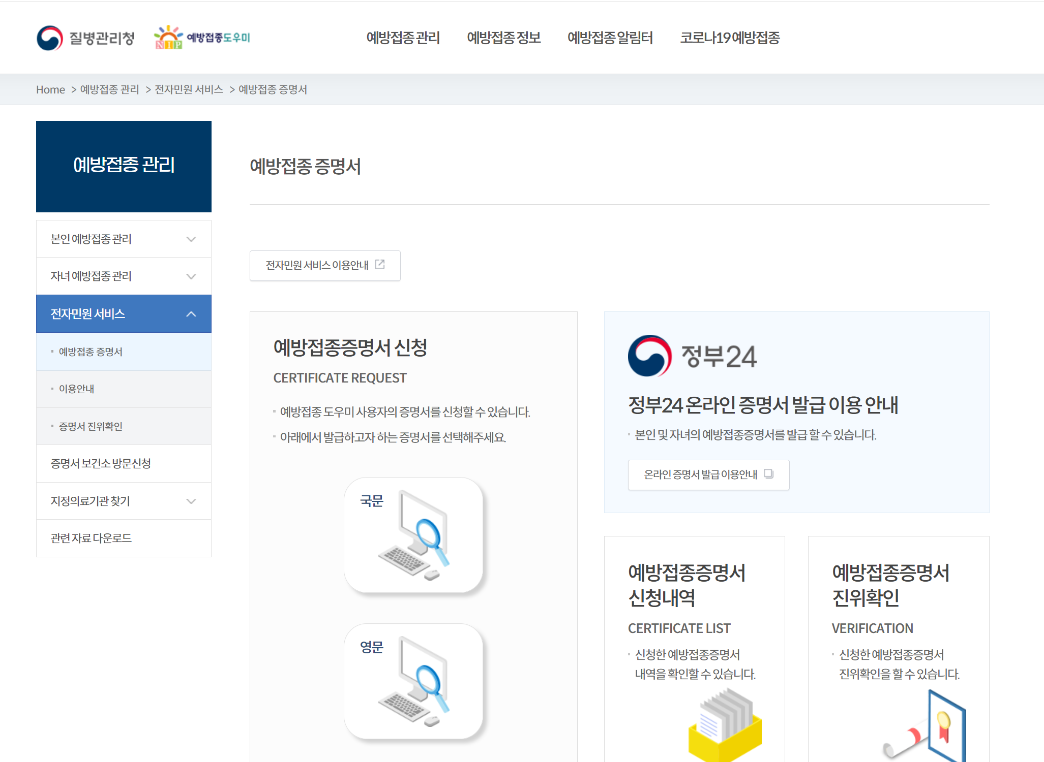 1, 질병관리청 예방접종증명서 발급