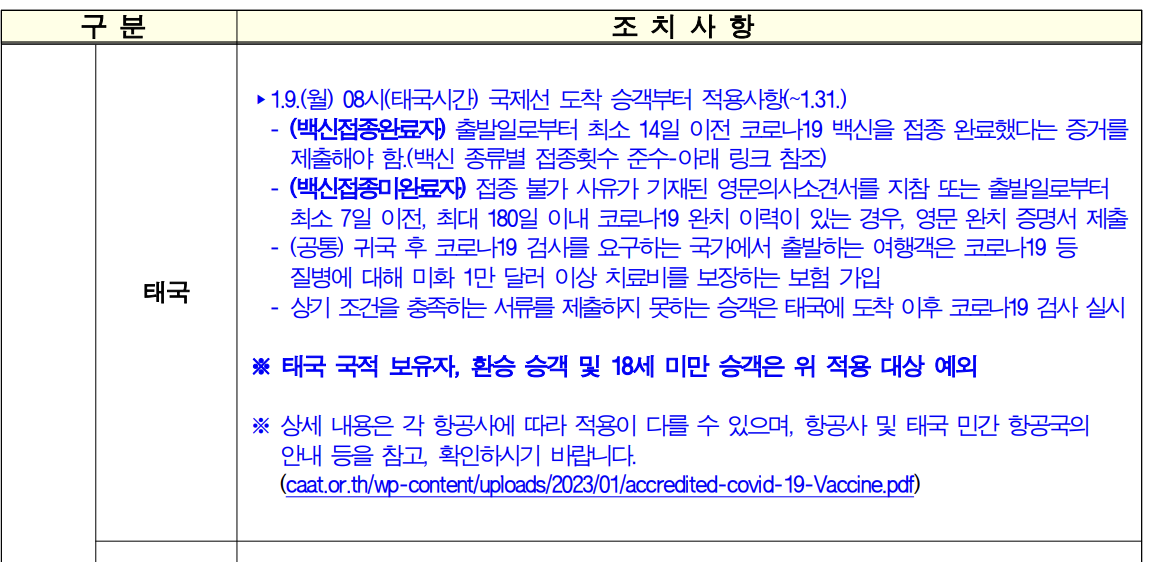 태국의 경우 1.9(월) 국제선 도착 승객부터 백신 접종에 대한 증명자료 제출을 요구하고 있다.