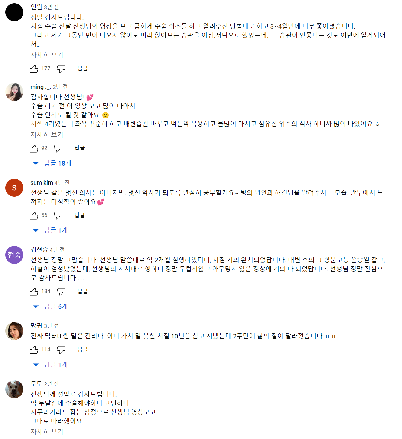 위 영상 보고 치질완치훈련으로 치질 완치된 분들 후기