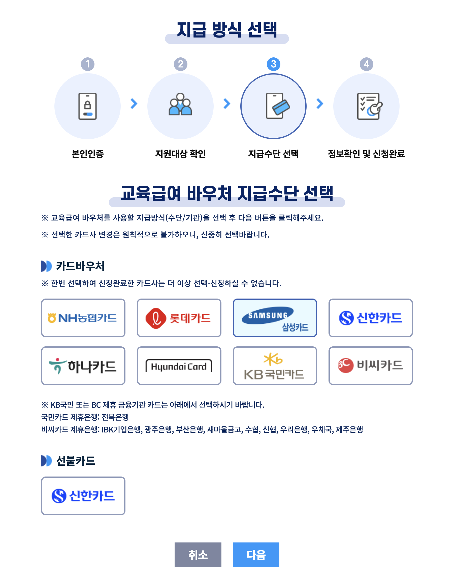 3. 교육급여 바우처 지급카드 선택