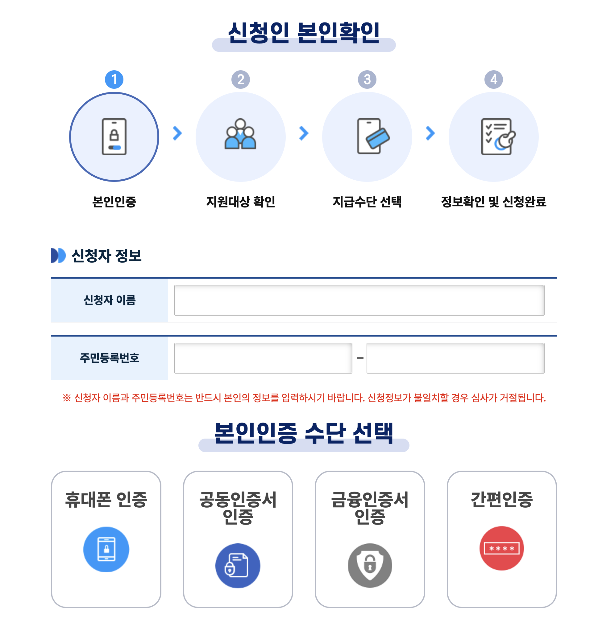 전체 동의 후 신청인 확인을 하면 지원대상 확인 여부가 가능합니다.