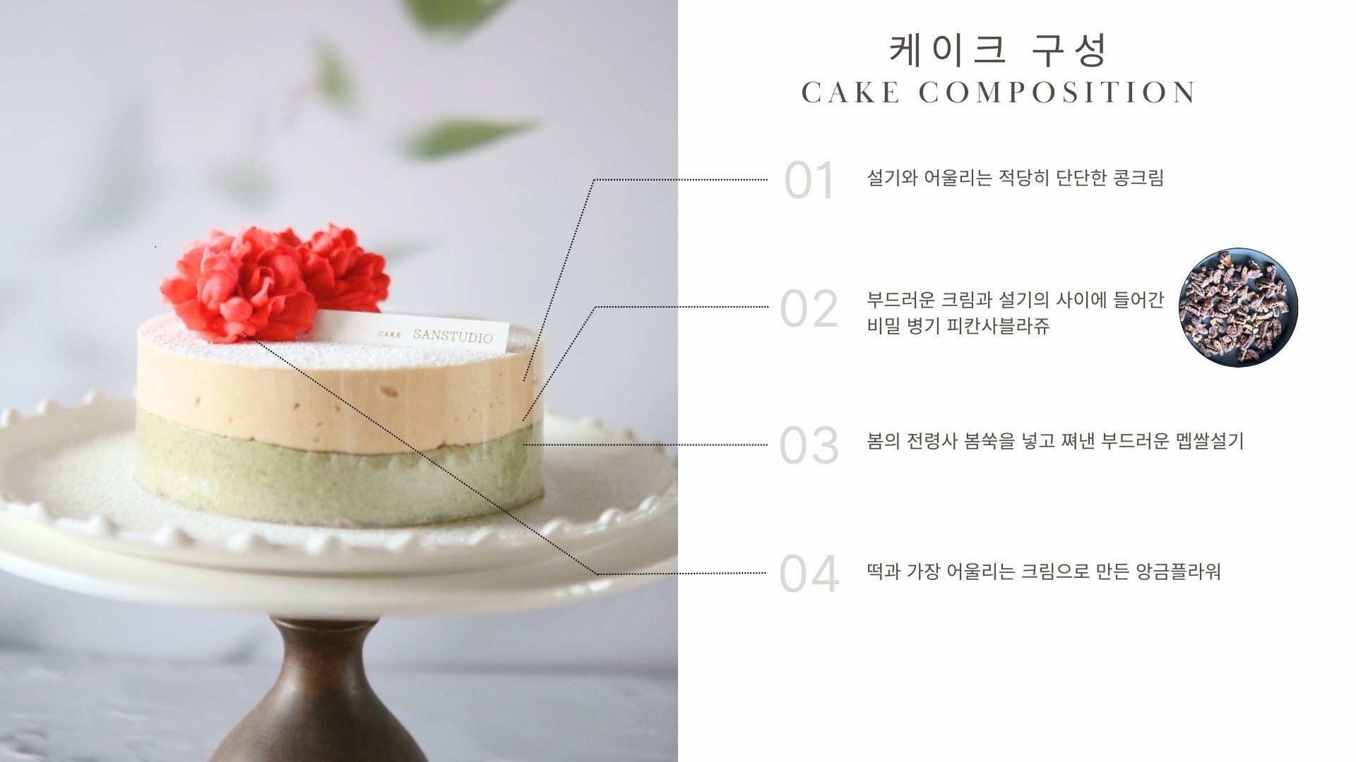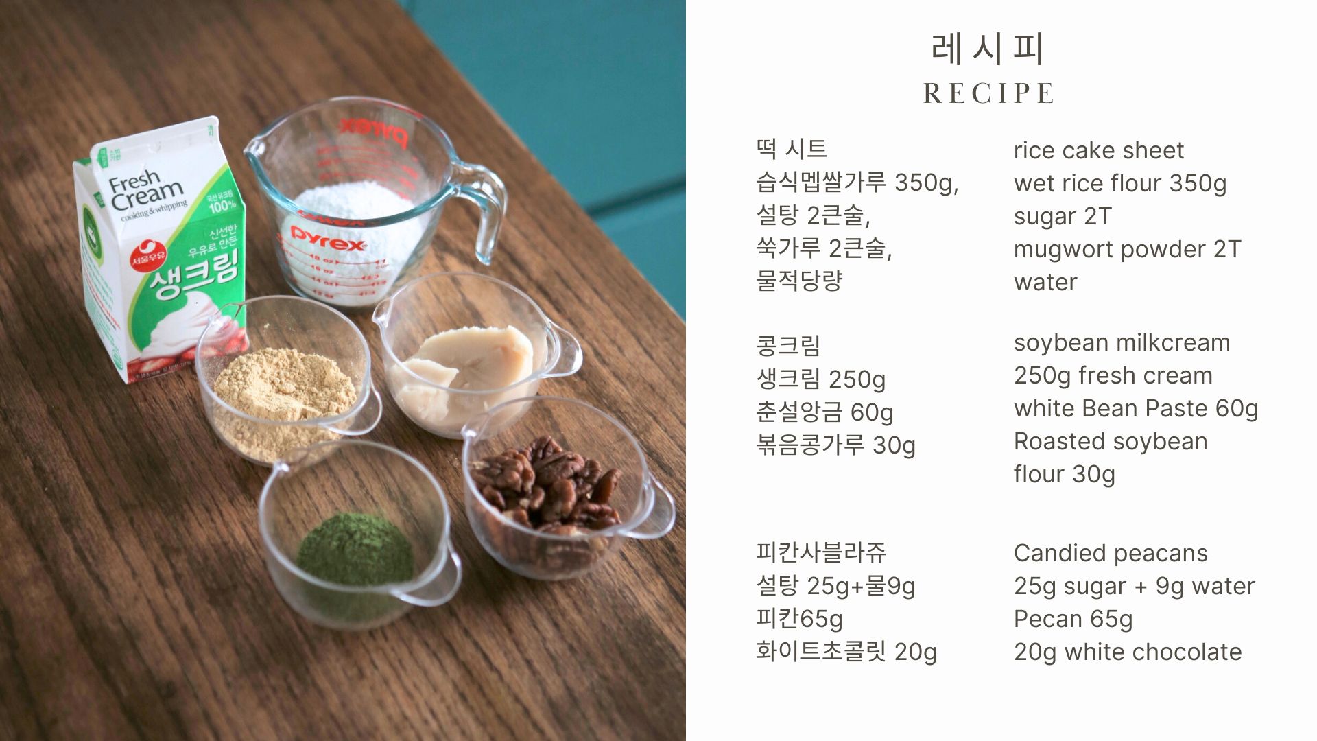 시트는 떡이고 크림은 콩크림 이자체로도 괜찮지만 여기에 바삭바삭한 식감을 더해 주고싶어서