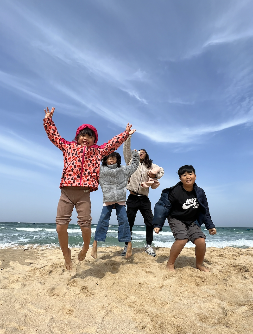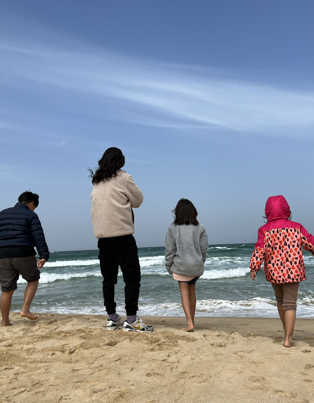 해변에서 사진은 역시 점프샷을 찍는것이다. 요즘은 릴스 동영상도 많이 찍는데 여럿있을 때는 점프샷으로 분위기를 한껏 업그레이드 해주면 아이들이 많이 좋아한다. 역시 아이들은 뛰어놀아야 한다. 한껏 피곤하고 퉁퉁 부운 우리 부부의 얼굴을 보니 웃음이난다.