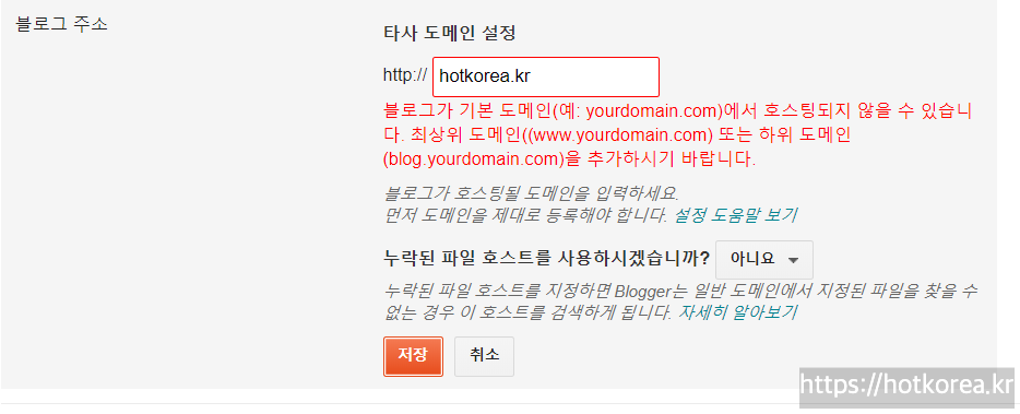 구글블로거에서 개인도메인 연결하는 방법입니다.