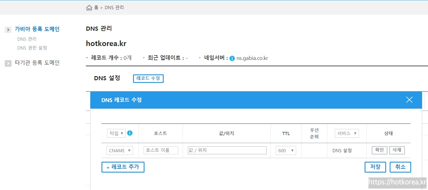 도메인호스팅 홈페이지를 접속합니다.(저는 가비아를 사용하고 있습니다.)