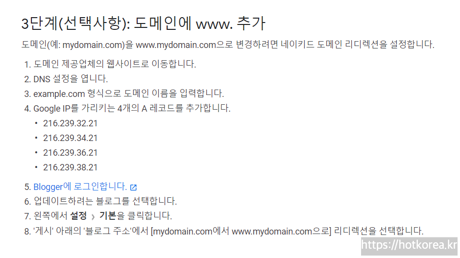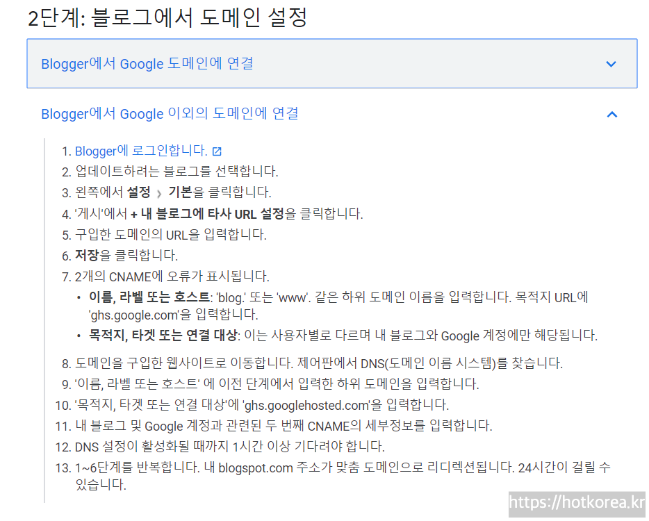 구글블로거에서 직접 도메인 구매하신 분들은, Blogger에서 Google도메인에 연결에 대한 내용 보시면됩니다.