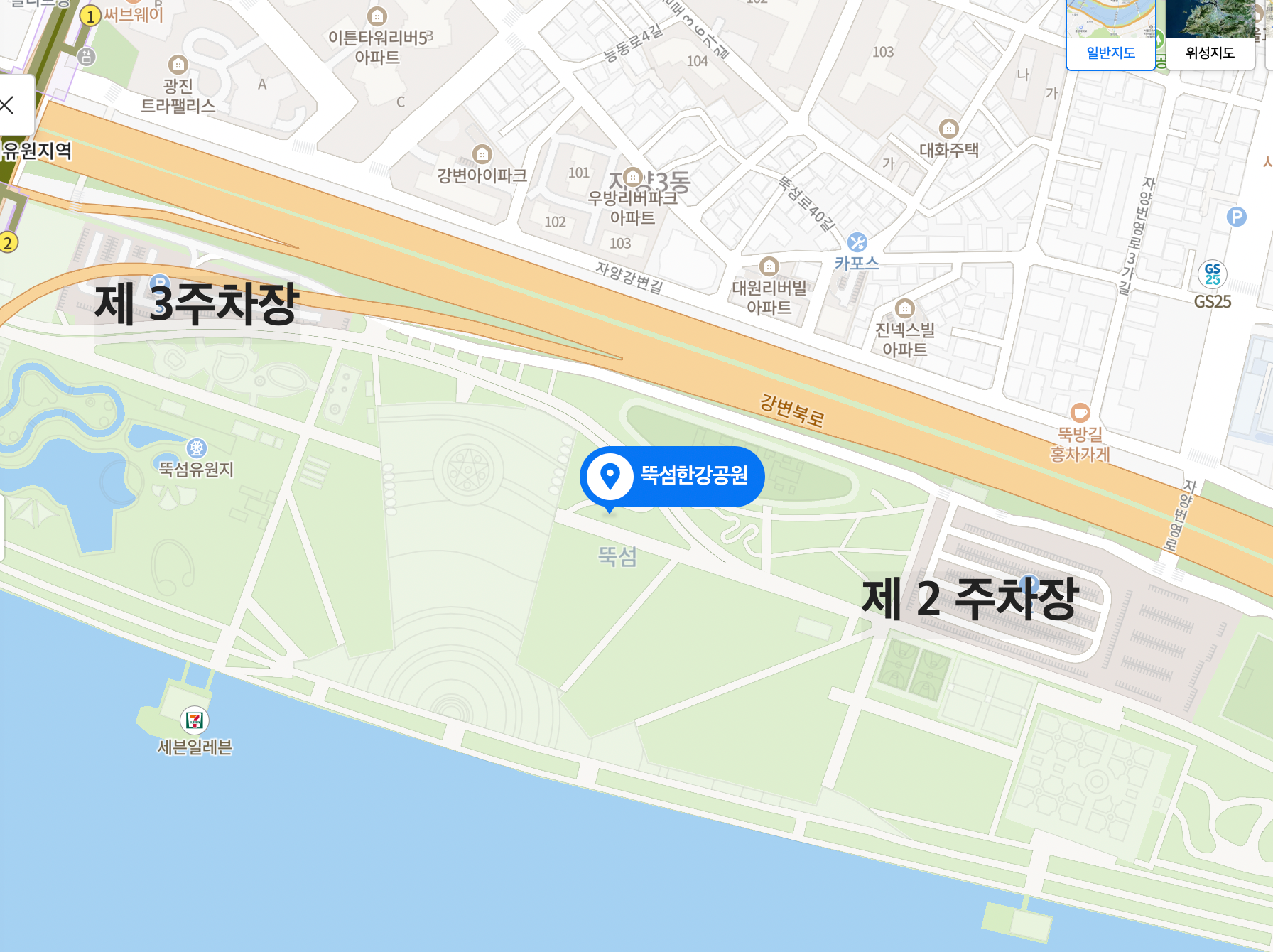 뚝섬 한강공원 주차장은 주차장 1.2.3과 뚝섬 청담대교 밑 공영주차장 이렇게 총 4곳이 있습니다
