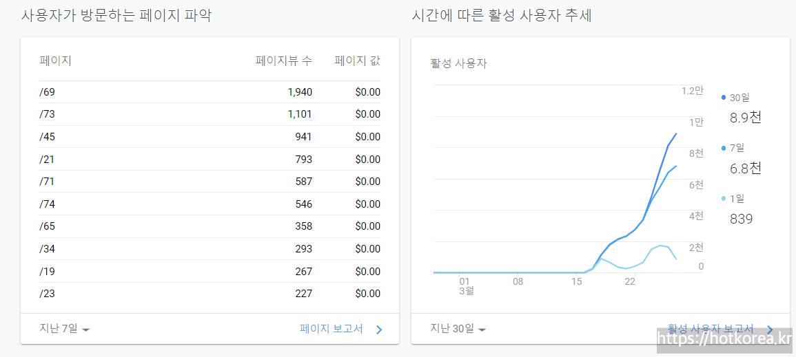 페이지별로 통계가 가능해서 어떤 글이 인기가 좋은지 확인할 수 있다.