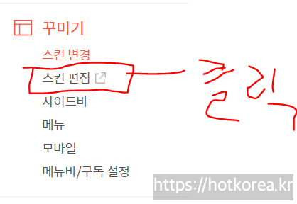 5. 티스토리 관리에서 왼쪽 매뉴에 스킨편집 클릭