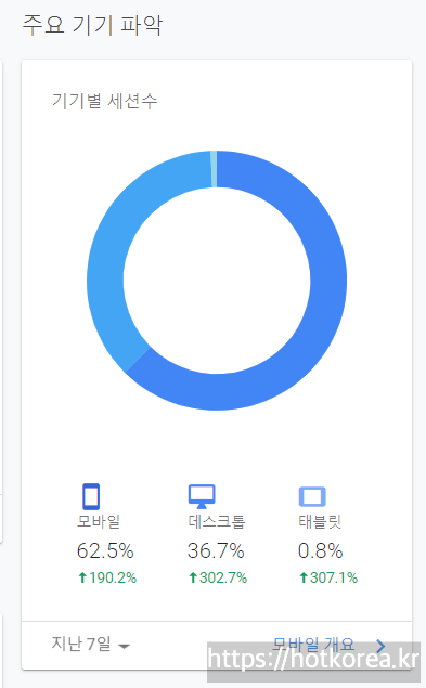 데스크탑과 모바일에 따라서 에드센스 광고를 다르게 달아야 하므로 참고할만한 수치다.