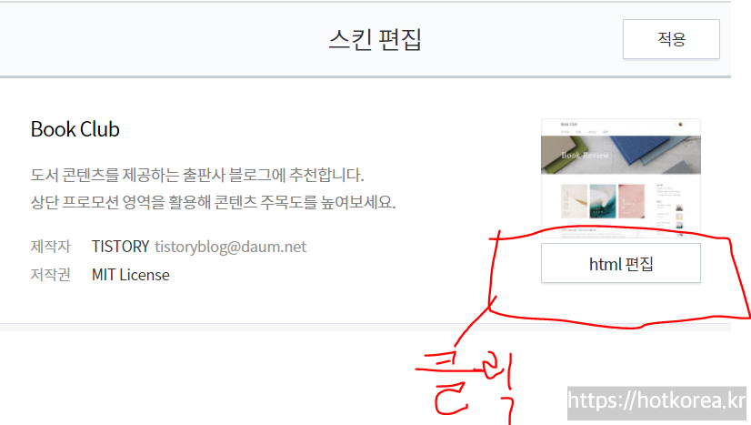 6. 스킨편집에서 html 편집 클릭.