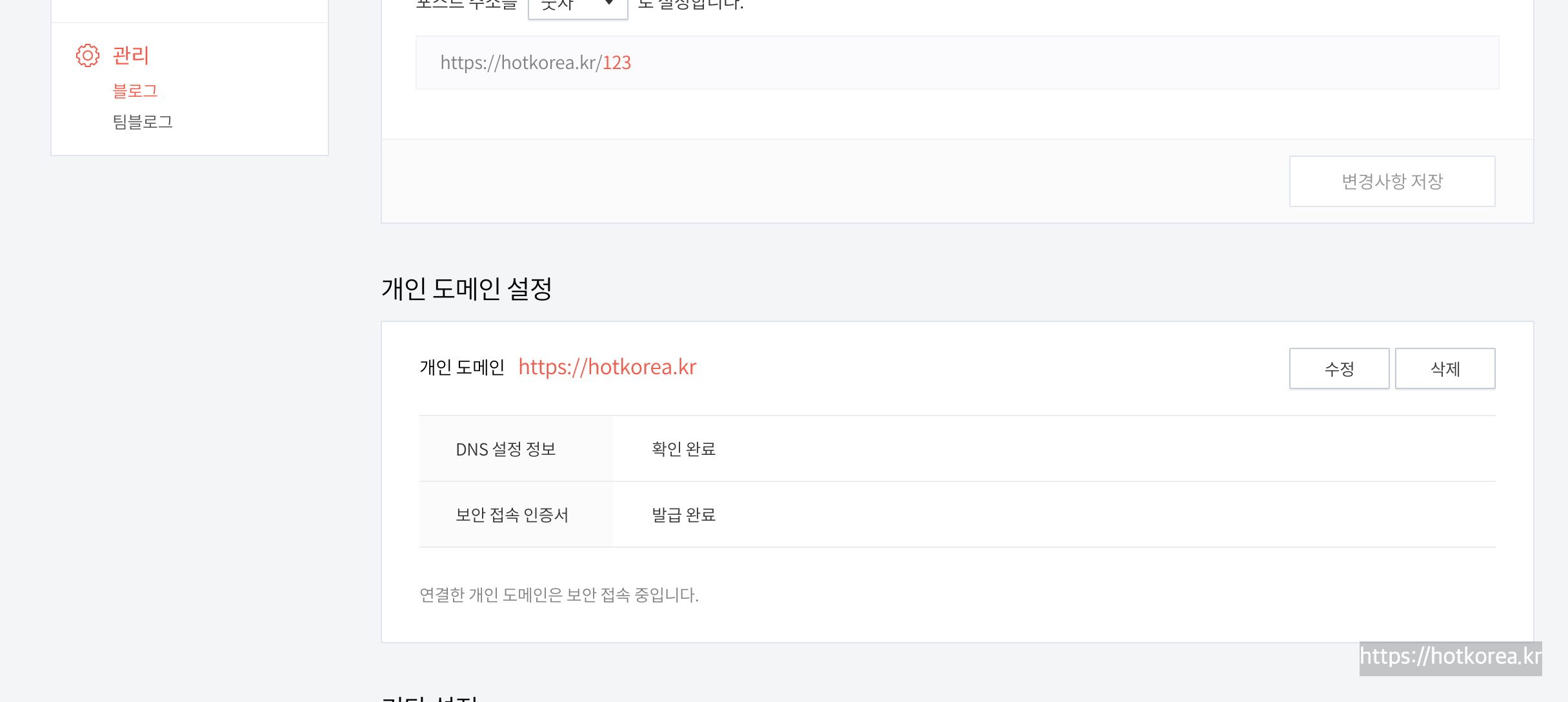 해당하는 도메인에서 오른쪽 설정탭을 눌러준다!!