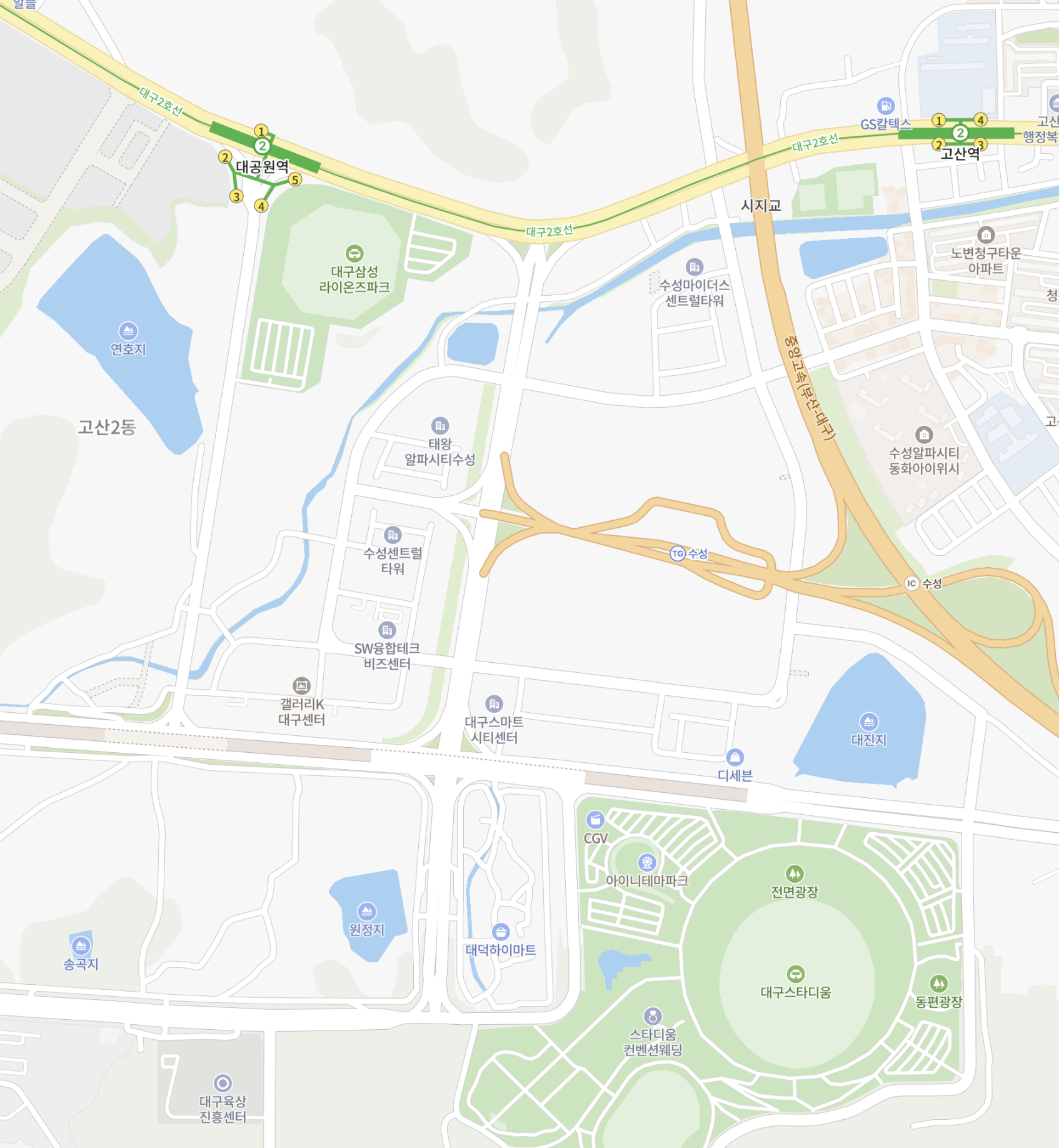 대공원역에서 내려서 가기에는 조금 애매하고 동대구역에서 택시로 20분이내에 도착한다.