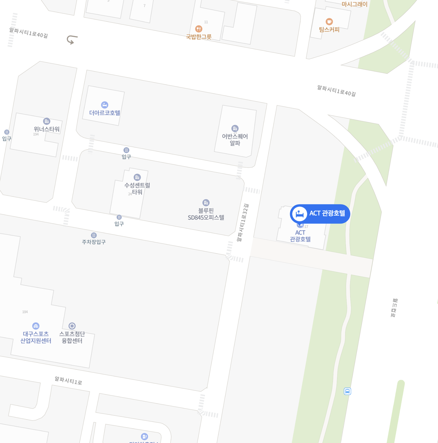 대구 수성구 알파시티에 위치한 더아르코호텔에 대한 후기를 남겨본다. 위치랑, 주소, 예약전화번호는 아래와 같다. (내가 예약한 시점에서는 전화로 예약하는게 제일 저렴했다!!) 위치 정보 http