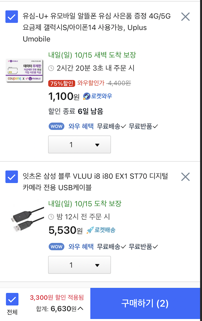 결국 로켓배송으로 하루만에 6,630원으로 이 모든걸 해결했다!!! 무려 만원은 절약한듯.. 시간을 따지면 더더욱 절약이다.