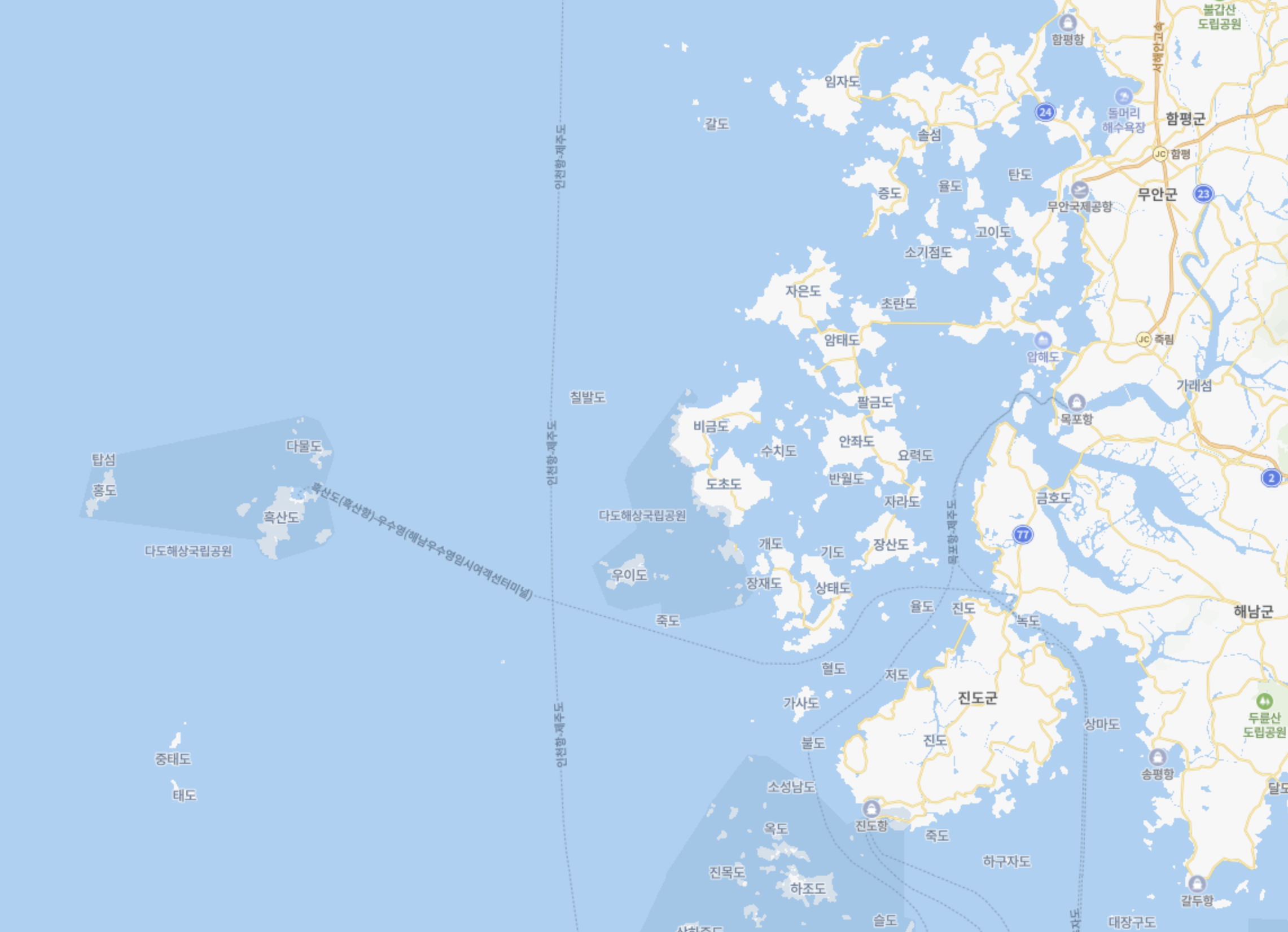 목포에서도 꽤 왼쪽으로 와야하니...이런곳에 섬이 있었구나 생각이 든다.